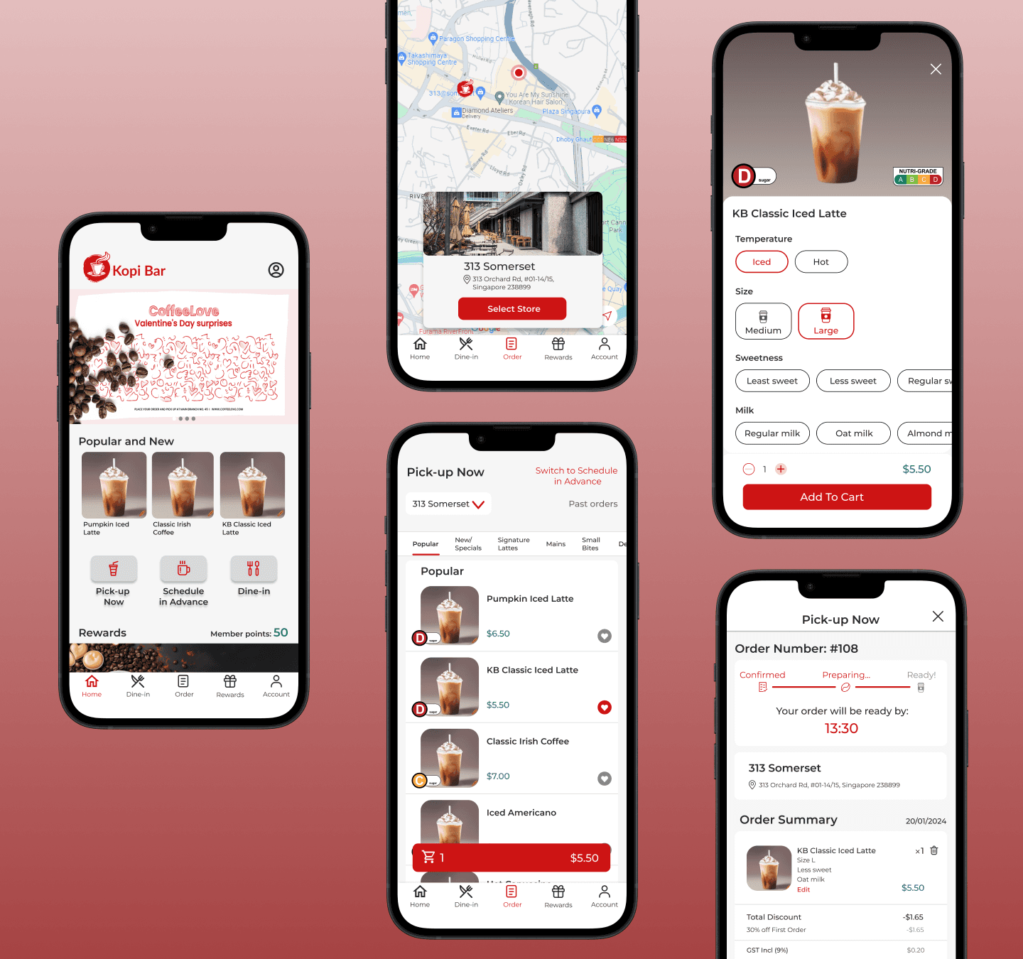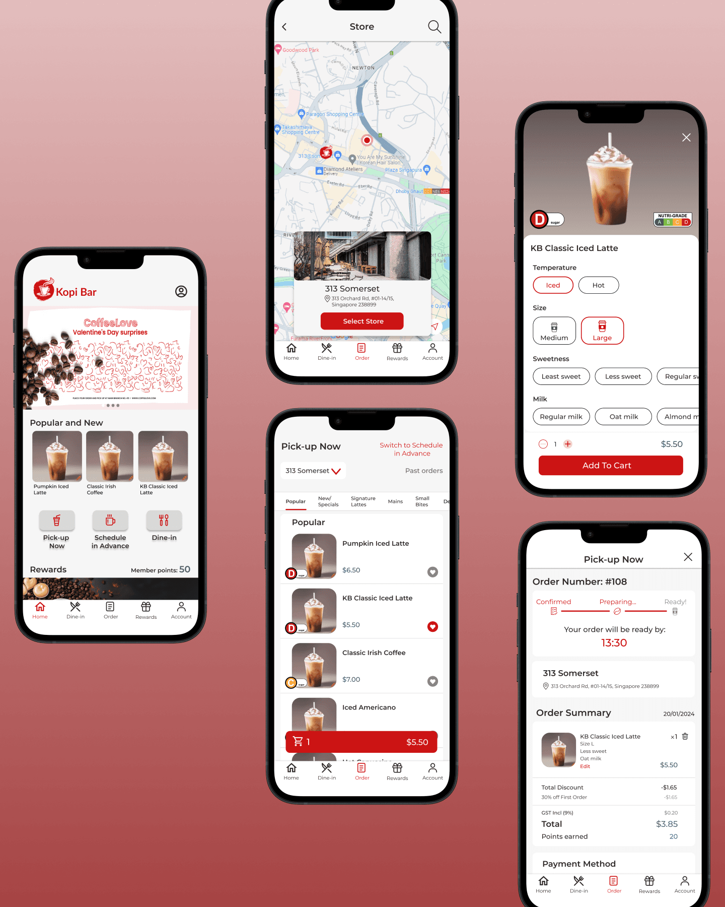 By implementing simplicity in the design, the result is an easy to use and efficient ordering process that encourages customers to place their orders through the app, retaining customers who face difficulty ordering in person and driving more sales for the brand.